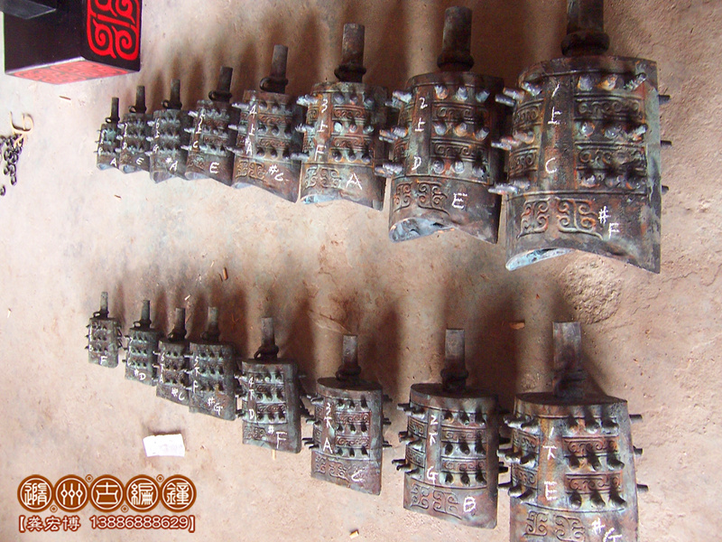 16件晉侯穌青銅編鐘,是我公司董事長、工藝美術(shù)大師王蒲琴女士根據(jù)晉侯穌編鐘設(shè)計制作,編鐘外形按照晉侯穌編鐘設(shè)計制作,編鐘為青銅鑄造,采用國際標準樂音音高A=440Hz調(diào)音,可以旋宮轉(zhuǎn)調(diào)演奏古今中外樂曲,編鐘大梁采用優(yōu)質(zhì)松木制作,表面噴漆,彩繪花紋;另配有保管編鐘用的木箱,便于運輸和儲存。