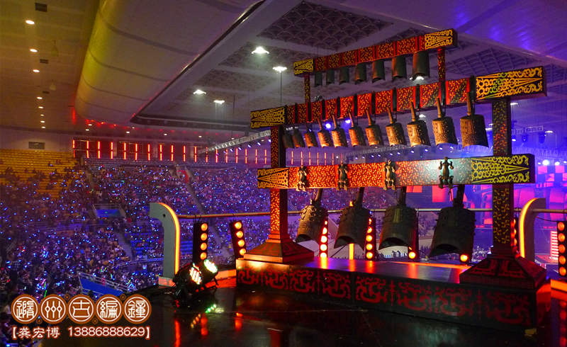 古編鐘公司受節(jié)目組委托將一套中型青銅編鐘運(yùn)達(dá)活動(dòng)現(xiàn)場,參加好聲音北京總決賽的開場部分,晚會以敲擊中國2400多年前的編鐘之聲開場,寓意中國文化底蘊(yùn)豐厚,好聲音自古傳今,節(jié)目由此發(fā)掘出中國眾多好聲音學(xué)員,開創(chuàng)新一代造星之路。