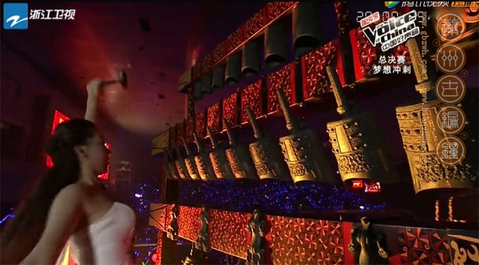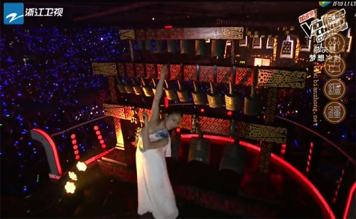 2014年10月7日,中國好聲音第三季北京總決賽在北京首都體育館成功舉辦,開場時(shí)一位身穿白衣的美麗女孩敲擊編鐘發(fā)出美妙的好聲音,這套編鐘就是由隨州市古編鐘文化發(fā)展有限公司制作的22件曾侯乙編鐘。